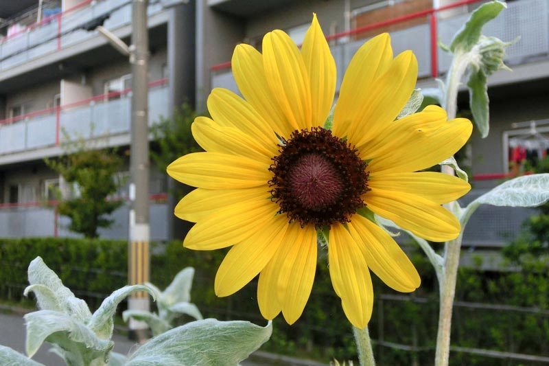1)チョッと小型のヒマワリですが「シロタエヒマワリ(白妙向日葵)」 キク科 のお花です。
