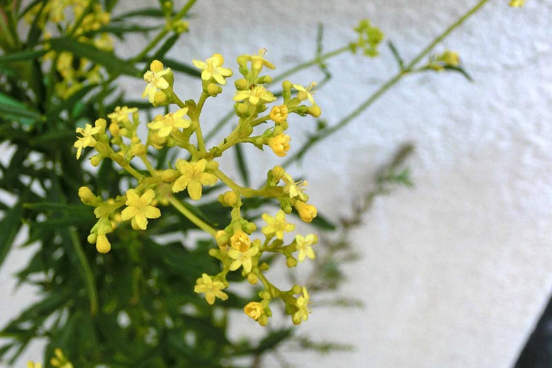 6)「オミナエシ(女郎花)」の名前の由来は、美女も圧倒する美しさという意味の「おみな圧し」からきているという説や、小さな黄色い小花が女性の食べていた粟飯=「おみな飯」に似ている事から名付けられたのだとか諸説があるようです。