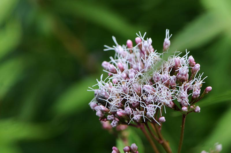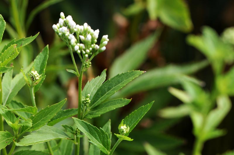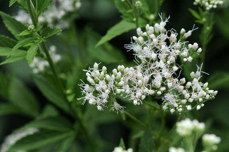 6)こちらもやっと咲き出した「シロバナフジバカマ(白花藤袴)」 キク科です。