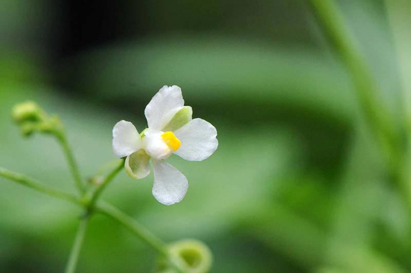 ⑨ 春~夏にかけてランナーの節から白い花を咲かせます。花は小さくて目立ちませんが、よく見ると素朴で可愛らしいと思います。