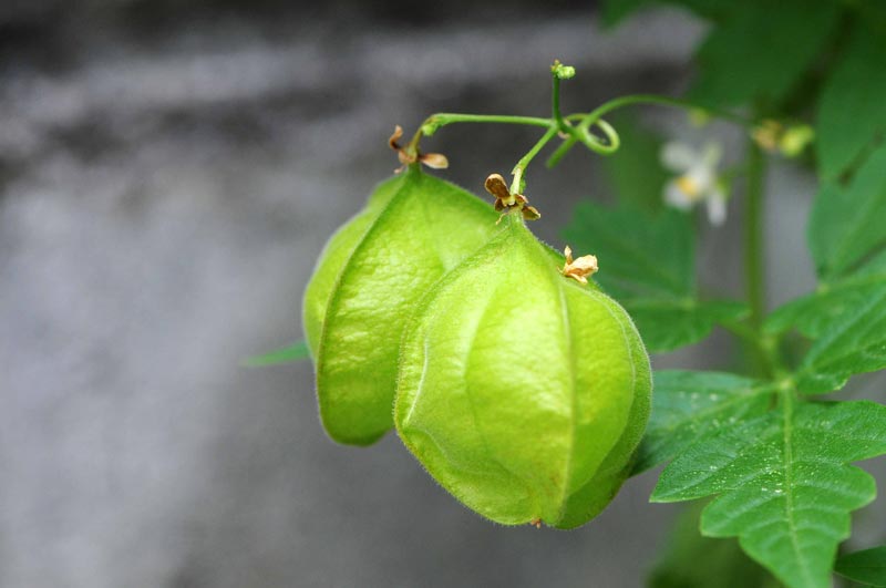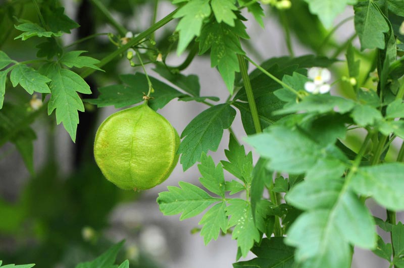 ③ 夏に緑がかった白色の小花を咲かせ、その後、紙風船のように膨らんだ袋状の果実をつけます。