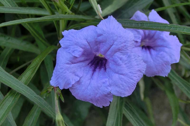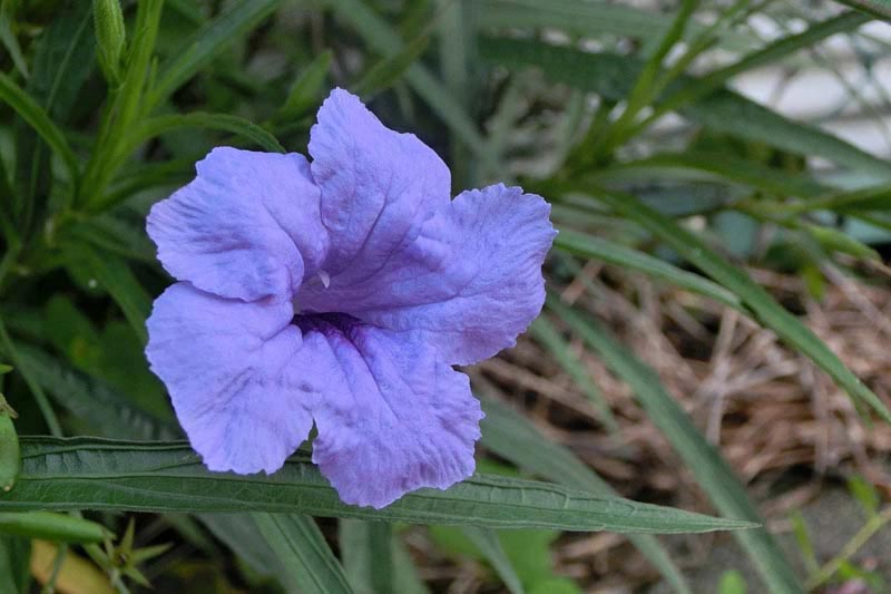 2)メキシコ原産の小低木で、6~10月頃まで長期間、葉腋から花茎を出して、その先に紫色の一日花を咲かせます。