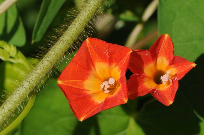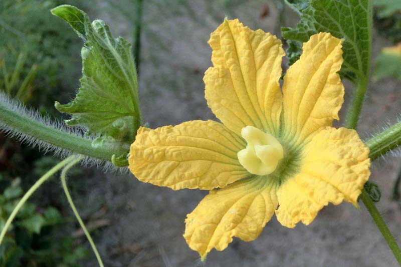 3)1枚目が雄花で、2枚目は雌花です。このお花も雌花ですが、もう実も大きく成りだしていますね。
