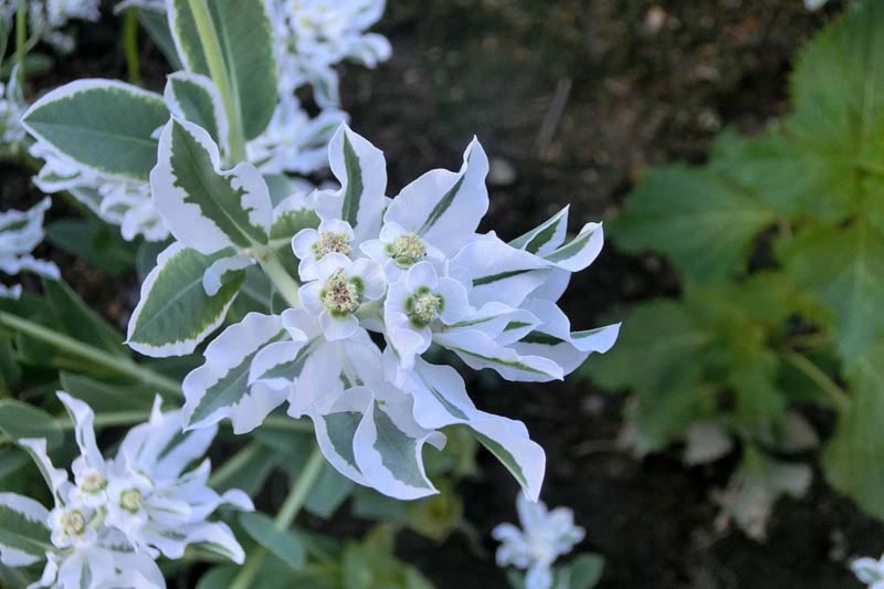 5)種小名のマルギナタ「Euphorbia marginata」は「縁辺のある」の意で、この葉姿に由来するそうです。