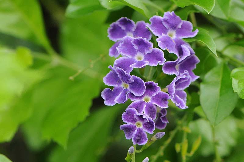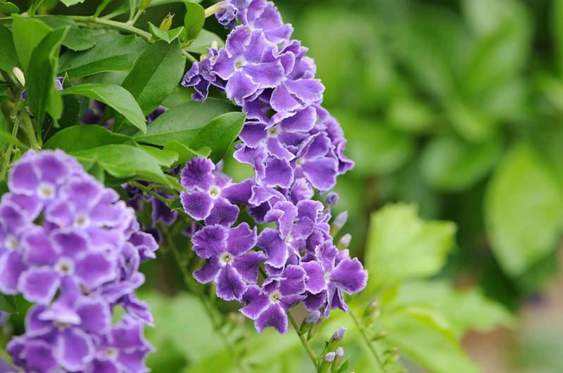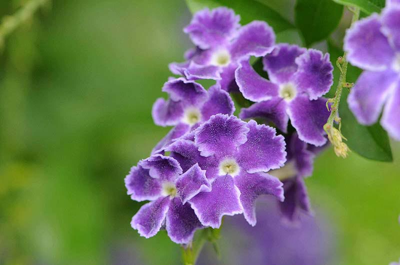 2)デュランタ・レペンスの園芸品種で、こぼれるように小さな紫の花が咲きます。