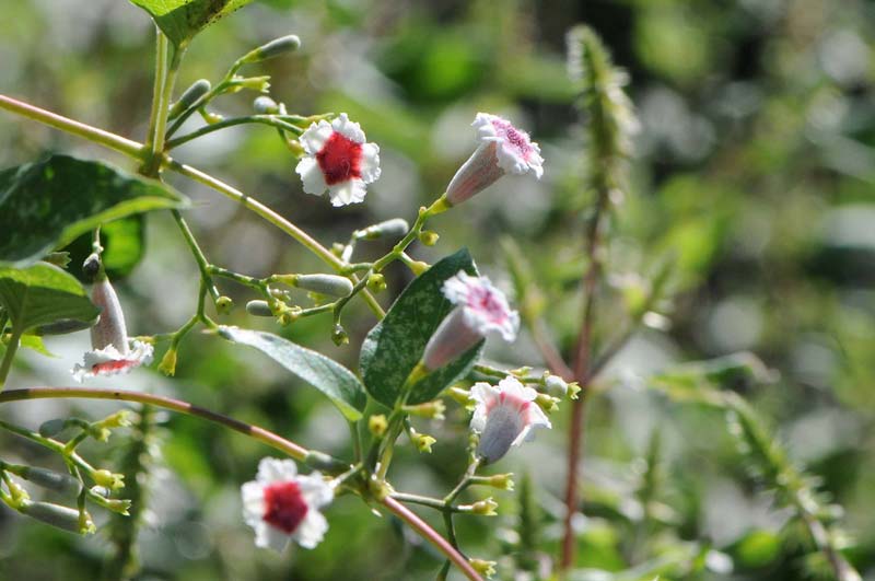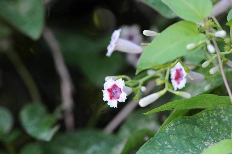 3)花期は7月から9月頃で、花弁は白色、中心は紅紫色であり、その色合いが灸を据えた跡のようなのでヤイトバナ(灸花)の別名があります。果実は黄褐色です。