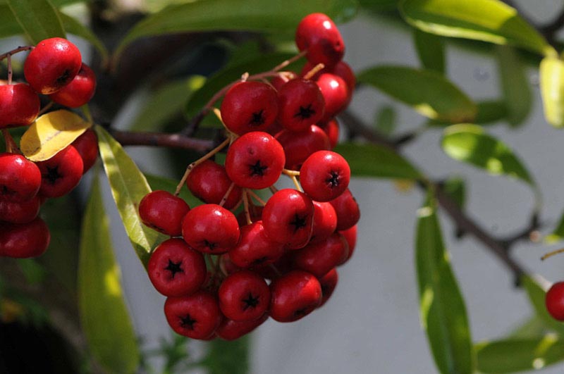 2)属名、園芸での通称は、ピラカンサと呼ばれているそうですが、ピラカンサとはバラ科トキワサンザシ属の種類の総称だそうですね。