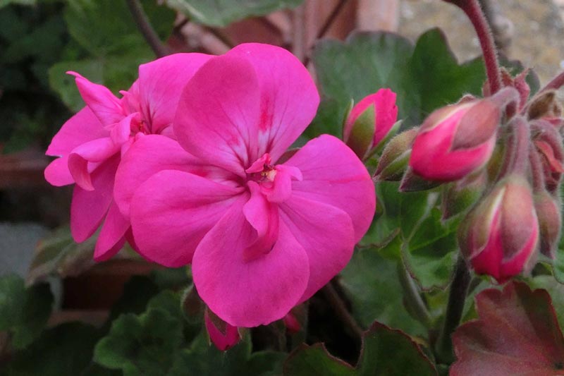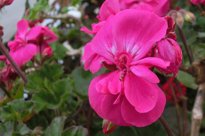 2)ゼラニウムは南アフリカを中心に熱帯アフリカ、シリア、オーストラリアなどの広い範囲に約280種が分布し、花後に枯れる一年草、毎年咲く多年草、低木など様々な種類があるそうですね。