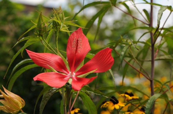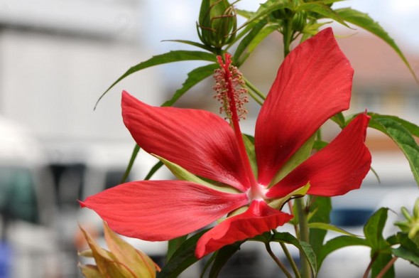 4)花オクラの葉っぱによく似た「モミジアオイ(紅葉葵)」 アオイ科のお花です。