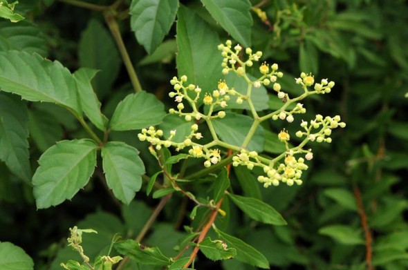 1)最初のお花は、「ヤブガラシ(薮枯らし)」 ブドウ科 別名:ビンボウカズラ(貧乏葛)です。