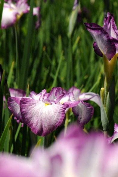 ↓ の花菖蒲も綺麗ですが、此処の前ボケの縦の写真が好きです。