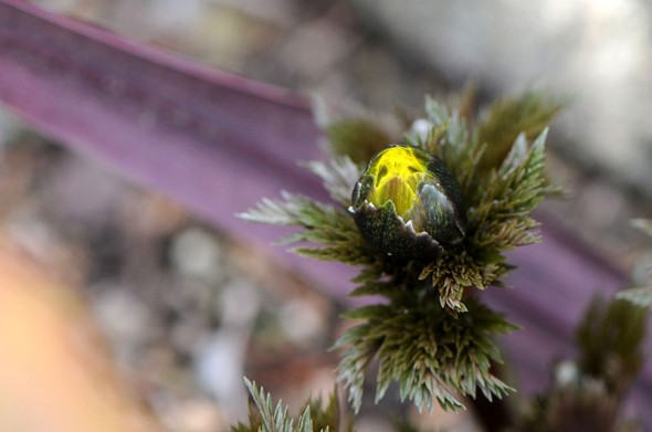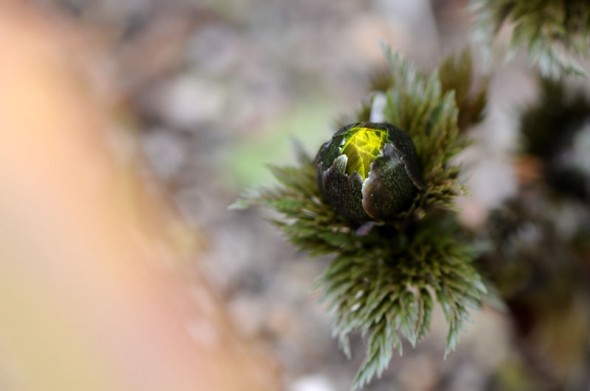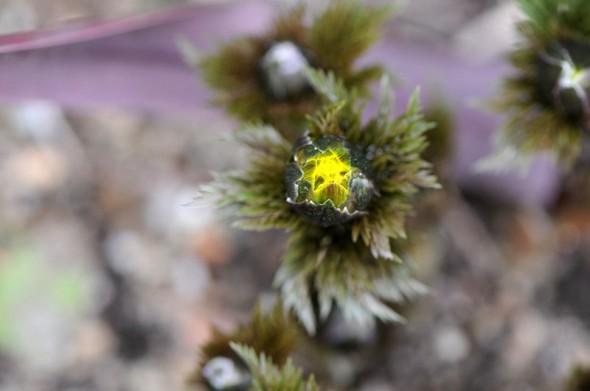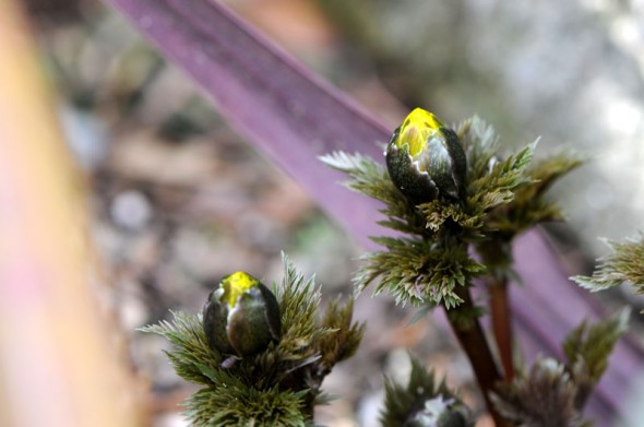 1)「フクジュソウ(福寿草)」 キンポウゲ科の蕾です。
