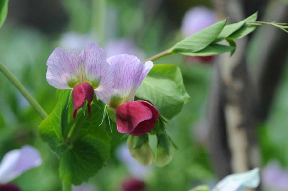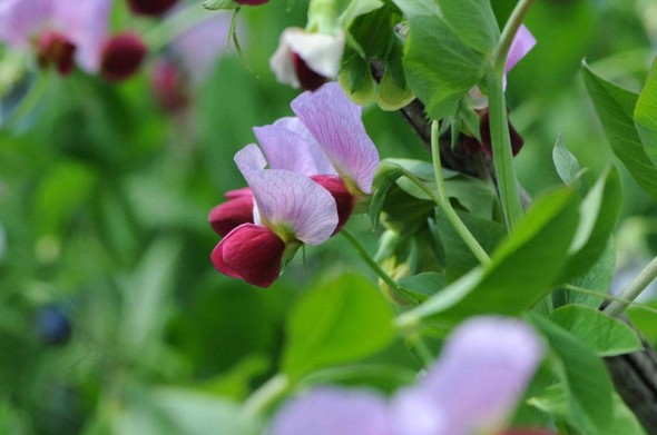 よくサヤエンドウを収穫してきて、さやの筋を取らされていたのを思い出します。逆に赤っぽい花って大人になってから知りました。