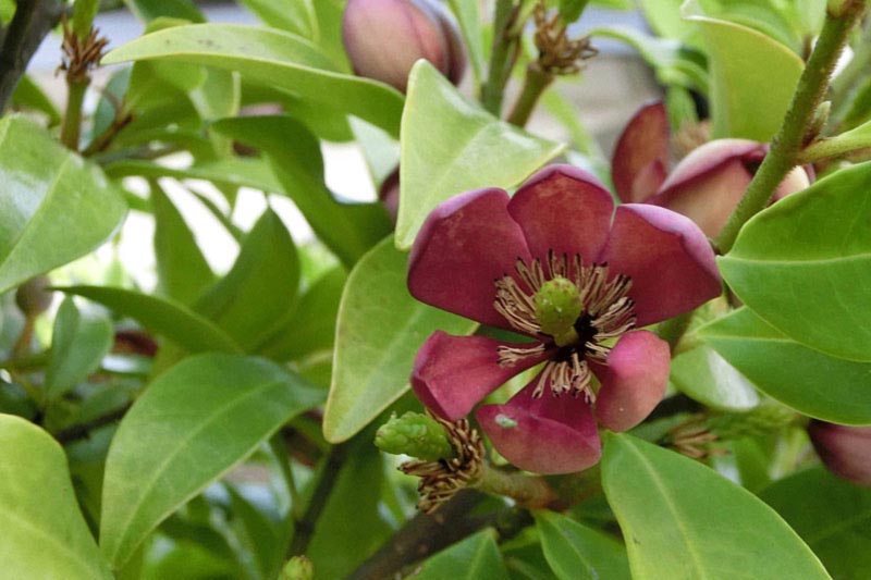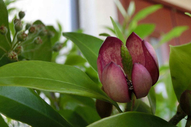 カラタネオガタマは実家にも咲いていましたが、紅いカラタネオガタマは見たことがなかったです。