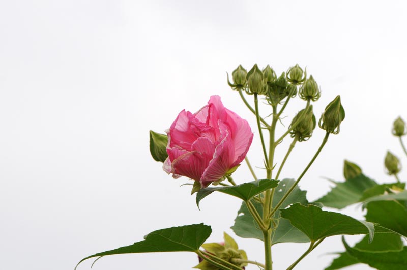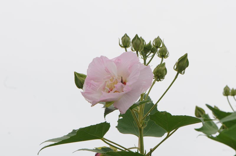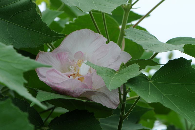 酔芙蓉は一日花ですので、朝白くてお昼には薄いピンクに