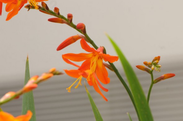 1)最初のお花は、「ヒオウギズイセン(檜扇水仙)」 アヤメ科 別名:ワトソニアアです。