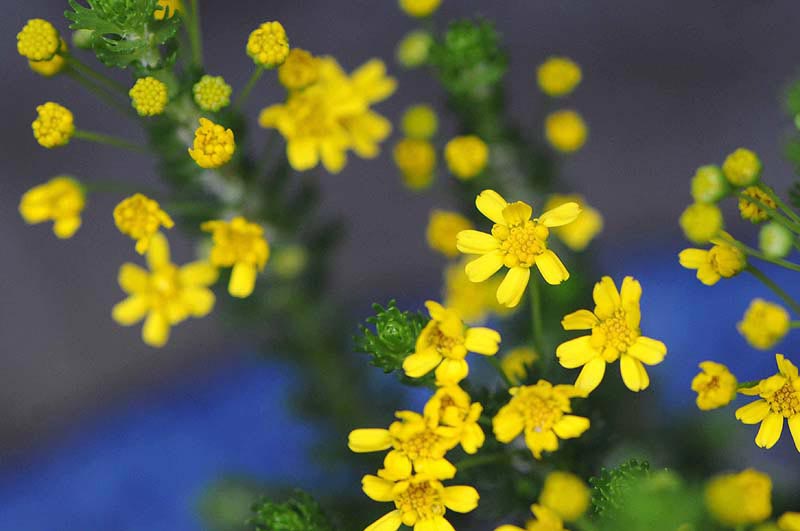3)枝は松葉を細かくしたような細い感じで、その先端に1cmほどの黄色い花を枝いっぱいに付ける姿はまさに「花がはじける」といった形容がふさわしく、ゴールデンクラッカーの名前もそこから来ているのでしょうかね。