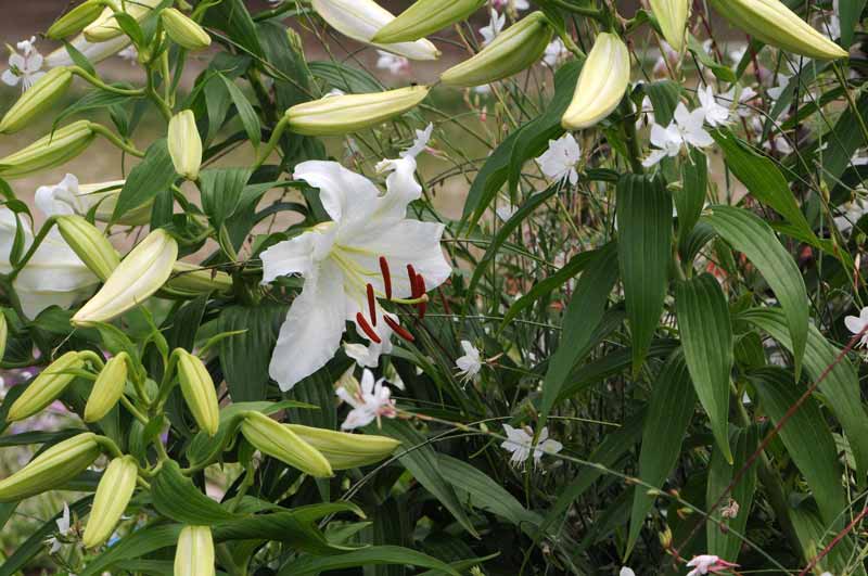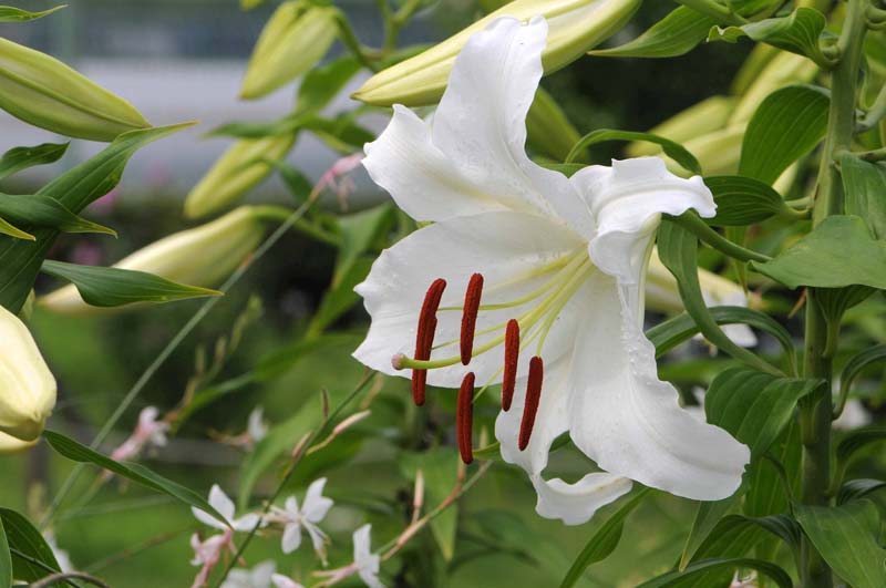 3)純白の大輪の花を咲かせ「ユリの女王」と言われています。開花時期は7-8月頃。