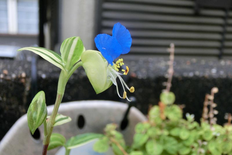 お花は、普通の露草の様なのですが、葉っぱが斑入りのようです。