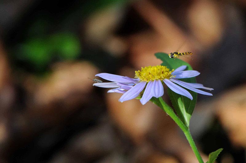 4)小さなハナアブが飛んで来たところをパチリと、止まる寸前のところです。