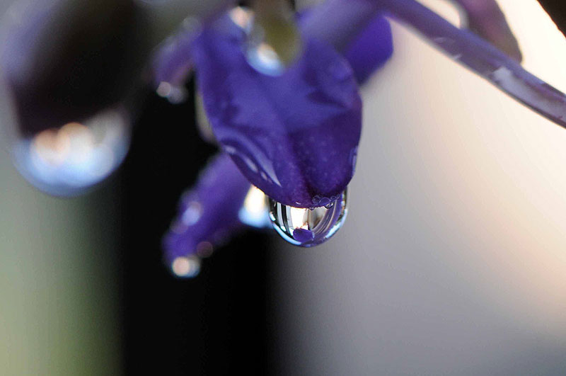 青風蘭に付いた雫、紫の色合いが付いて綺麗ですよね。